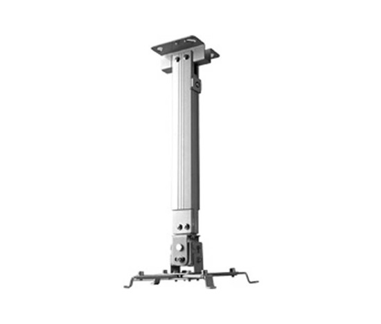 Stropní držák na dataprojektory – vzdálenost od stropu 73-120cm, přístroj nelze otáčet, lze naklonit +/- 10° bočně a +/- 15° ve směru, maximální zatížení 20kg, stříbrný. Univerzální systém uchycení dataprojektorů (rozsah 22,5-31,6 cm).