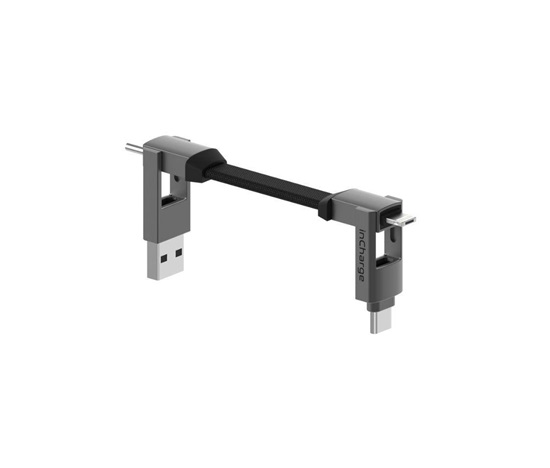 Představte si všechny kabely, které na svých každodenních cestách potřebujete, ukryté v kompaktní klíčence. Přesně takový je inCharge 6 od Rolling Square. Ten obsahuje celkem 5 konektorů – vstupní USB-A a USB-C a výstupní USB-C a duální Lightning s MicroUSB. Díky patentovanému designu bez nevzhledných rozdvojek můžete jednotlivé koncovky mezi sebou kombinovat a nabíjet tak téměř všechna přenosná zařízení z jakéhokoliv zdroje. Silné neodymové magnety vám dovolí inCharge proměnit v malý přívěsek, bezpečně ho přichytit ke klíčům nebo přezce batohu a mít ho tak vždy u sebe.