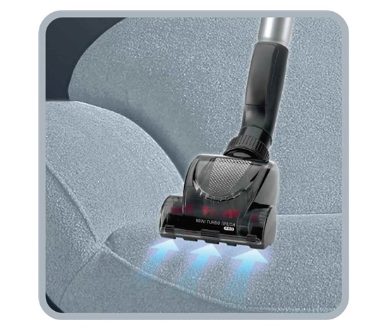 Kompaktní sáčkový vysavač Rowenta Compact Power RO3985EA se i přes malé rozměry pyšní vysokou účinností, díky které se postará o nejlepší výsledky úklidu tvrdých podlah ve své třídě a rovněž zajistí velmi účinnou filtraci prachu a vysoký výkon při nízké spotřebě energie. Tento vysavač byl speciálně navržen pro péči o domácnost, kterou obývají domácí mazlíčci. Součástí balení je Mini turbokartáč, který se postará o rychlé a účinné odstranění zvířecích chlupů z koberce a čalouněného nábytku. Díky tříúrovňové filtraci je zachyceno až 99,98 % prachových částic, které jsou následně přesunuty do praktického prachového sáčku Hygiene+, který se postará o jejich hygienické uložení.