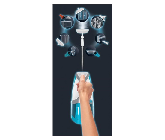 Díky rozmanitému příslušenství vyhoví tento parní čistič všem vašim požadavkům při úklidu. Stěrku na okna využijete při mytí oken a zrcadel, koncentrátor páry při úklidu obtížně dostupných míst, speciální kartáč k čištění spár mezi obklady a mopy z mikrovlákna k osvěžení textilií. Kromě toho jsou součástí přístroje barevné univerzální kartáče pro všechny povrchy v koupelně (modré kartáče), kuchyni (oranžové kartáče) a ostatních místnostech (zelené kartáče).