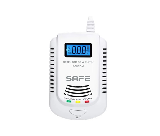 SAFE 808COM představuje hardwarově inovovanou verzi inteligentního kombinovaného detektoru vybaveného nejnovější technologií elektrochemického a polovodičového, multifunkčního senzoru druhé generace pro detekci a včasné varování před výskytem oxidu uhelnatého (CO) a takřka všech hořlavých, výbušných plynů (zemní plyn, metan, propan, butan). Zařízení vyniká stabilitou, vysokou citlivostí a dlouhou životností dvojice senzorů.