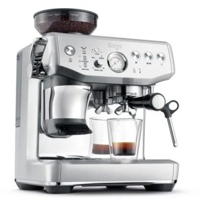 Za skvělou kávou již není potřeba pospíchat do kaváren ani restaurací. Kávu si za pár minut zvládnete udělat sami zkrátka ve vlastním kávovaru. Populární ruční pákový presovač SAGE SES876BSS Espresso s příkonem 1850 W vám z právě namletých kávových zrn sotva se rozkoukáte vytvoří dokonale vyvážené presso i latté nebo cappucino. Pochutnáte si tak na kávě jako z kavárny pěkně u vás doma. Pokud jsou vaše nejoblíbenější mléčné kávy, jako je cappuccino nebo caffe latté završené jemnou pěnou, bude se vám hodit vysokotlaká napěňovací tryska, která dokáže s mlékem zázraky. Nelze zapomenout na integrovaný mlýnek kávy, který kávu pomele tak nahrubo, jak si sami zvolíte. Neměli byste opomenout ani jeho rozměry 38 × 33 × 41 cm. Hmotnost tohoto modelu se vyšplhala na 9,7 kg. Zásobník vody dokáže pojmout 2 l, s tímto objemem presovač Sage si hravě poradí i s několika milovníky kávy po sobě. Konečný vzhled přístroje má na starosti nerez. Pro jeho zhotovení výrobce zvolil materiál, kterým je nerez.