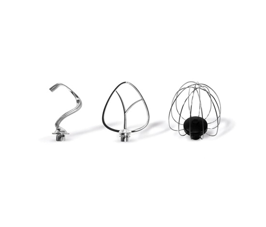 Šlehací balónová metla dokáže vyšlehat bílky do takové pevnosti, že můžete klidně otočit mísu vzhůru nohama – a bílky se ani nehnou. Perfektně našlehaná šlehačka či krémový pudink? Hotovo během chvilky! Ultralehká hliníková míchací metla zase s lehkostí zvládne piškotová těsta na dorty či palačinky a hutnější pomazánky. Speciálně tvarovaný hnětací hák pak hravě zpracuje hutná těsta na pizzu či chléb, ale také domácí rohlíky, křupavé housky nebo vláčné briošky na burgery. Taky už se vám sbíhají sliny?
