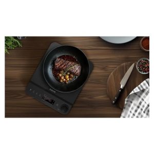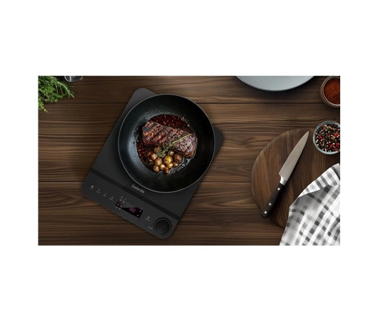 S tímto jednoplotýnkovým indukčním vařičem můžete vařit v nádobách o průměru 12 až 26 cm, přičemž přesnou velikost hrnce či pánve spotřebič rozpozná automaticky. Navíc se automaticky vypne, jakmile zvednete hrnec z plotýnky, takže nehrozí žádné plýtvání energií ani nežádoucí přehřátí (kromě toho se také vařič sám vypíná po 2 hodinách nečinnosti). Bezpečnostní prvky jsou tu ostatně opravdu promyšlené – zařízení disponuje i gumovými protiskluzovými nožičkami pro dokonalou stabilitu a pětinásobnou ochranou, která zahrnuje prvky zamezující přehřátí (varné desky i elektroniky), přepětí, podpětí i použití nevhodného nádobí.