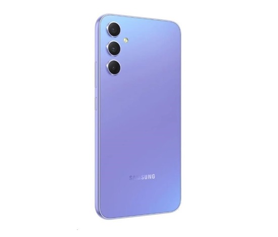 Smartphone Galaxy A34 5G s decentními liniemi a lesklým povrchem je k dispozici v trendy barevných odstínech včetně Awesome Lime, Awesome Silver, Awesome Violet a Awesome Graphite.