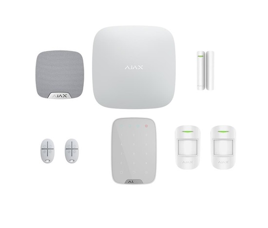 Sada zahrnuje Ajax Hub 2, Ajax DoorProtect, 2x Ajax MotionProtect, 2x Ajax SpaceControl, Ajax Keypad a Ajax HomeSiren (1.generace). Samozřejmě máte možnost dokoupit i další komponenty.