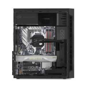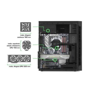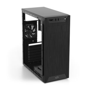 Skříň formátu Mini tower nabízející dvě 3,5″ a dvě 2,5″ interní pozice pro disky. Pro optické mechaniky a jiné komponenty slouží jedna 5,25″ pozice. Připojení USB zařízení umožňují dva USB 3.0 porty na čelním panelu. Dalšími konektory jsou sluchátkový výstup a audio vstup pro mikrofon. Potěší také přítomné čtečky paměťových karet formátu SD a microSD. Uvnitř na zadní straně skříně je nainstalován ventilátor o velikosti 80 mm. Skříň je dodávána bez zdroje.