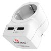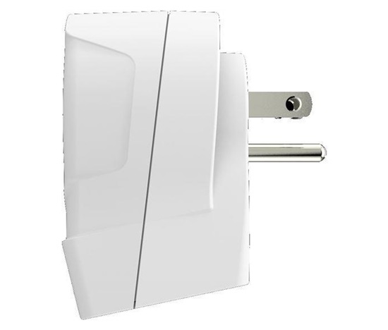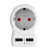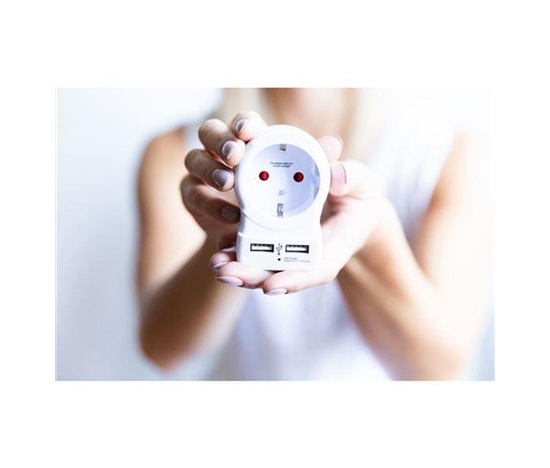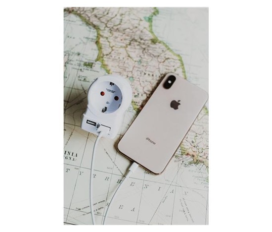 Cestovní adaptér s uzemněním, max. 15A, integrovaný USB nabíjecí adaptér 2400mA, výhodné spojení dvou zařízení v jednom, pro obyvatele Evropy, navštěvující USA a země s USA standardem