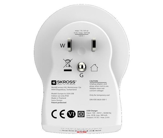 SKROSS cestovní adaptér USA USB pro použití ve Spojených státech, typ B