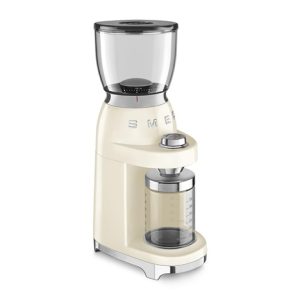 Smeg CGF11CREU mlýnek na kávu, 150 W, nastavitelná hrubost, nerezový mlýnek, nádoba z tritanu, krémový
