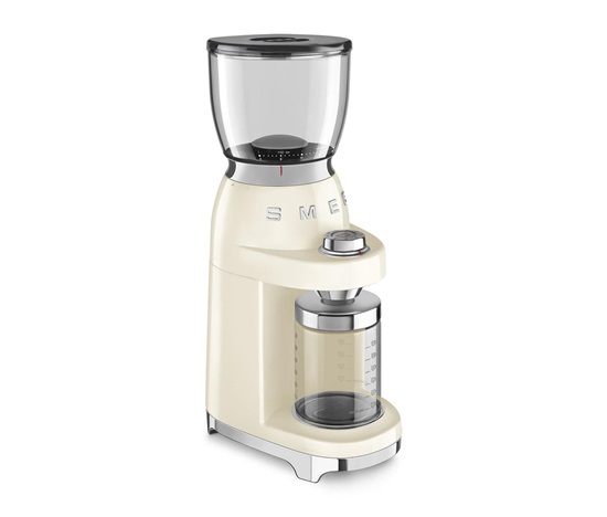 Smeg CGF11CREU mlýnek na kávu, 150 W, nastavitelná hrubost, nerezový mlýnek, nádoba z tritanu, krémový