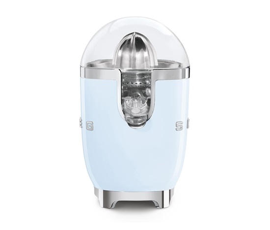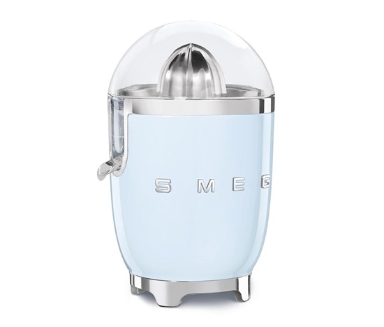 Smeg CJF11PBEU citrusový odšťavňovač, 70 W, manuální tlak, univerzální kužel z nerezové oceli, pastelově modrý