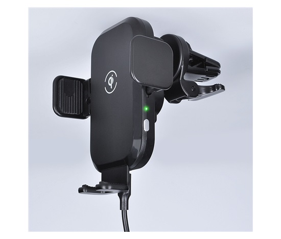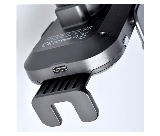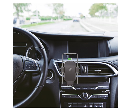 Qi bezdrátové nabíjení do auta s maximálním výkonem 15W, automatické uchycení telefonu při jeho vložení do držáku, automatická detekce bezdrátového nabíjení, snadné otevření držáku pomocí tlačítka i po vypnutí zapalování vozidla díky superkondenzátoru, kompatibilní s Qi zařízeními
