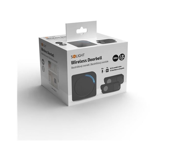 Solight bezdrátový zvonek, 2 tlačítka, do zásuvky, 200m, černý, learning code