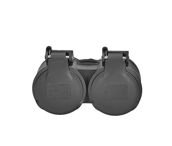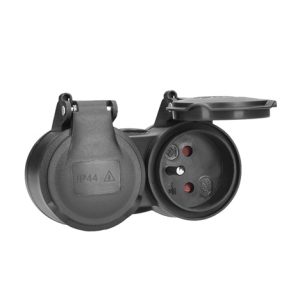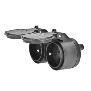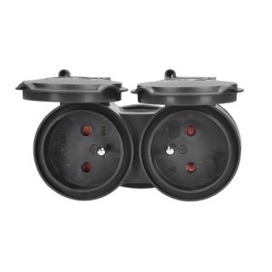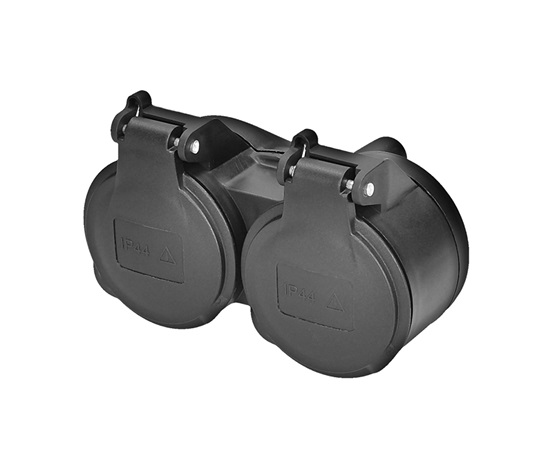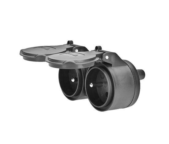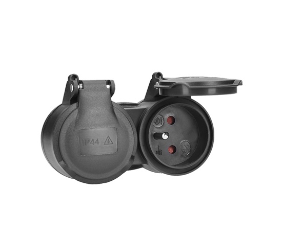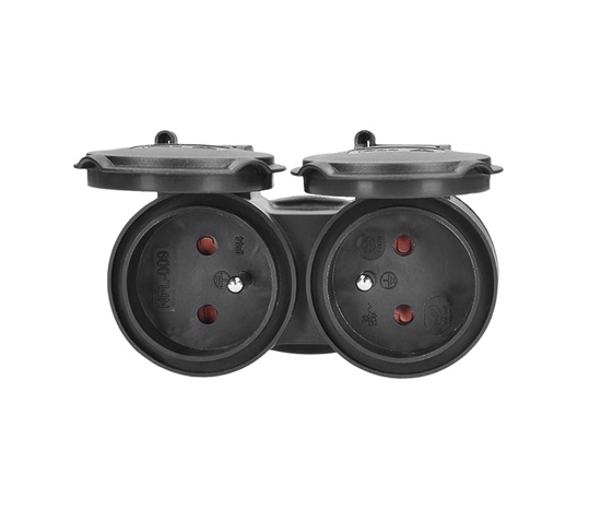 Rozbočka na kabel, 2 zásuvky 230V/16A, max. 3680W, krytky zásuvek, dětské pojistky, přímá, do vlhka – IP44, barva: černá