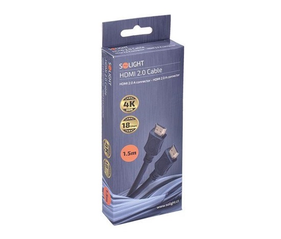 Solight HDMI kabel s Ethernetem, HDMI 2.0 A konektor – HDMI 2.0 A konektor, blistr, 1,5m