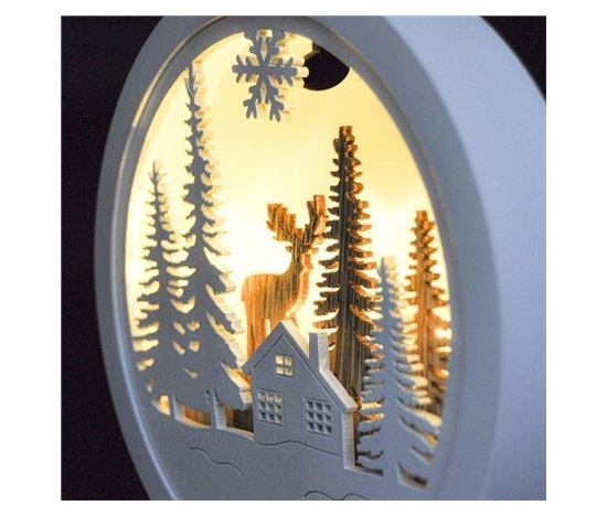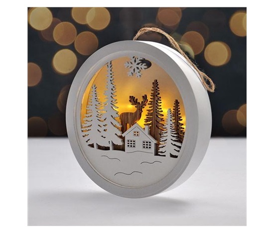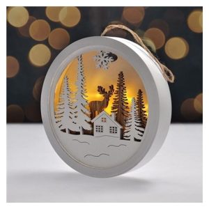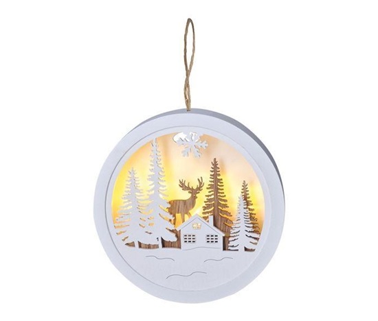 Solight LED dekorace závěsná, les a jelen, bílá a hnědá, 2x AAA