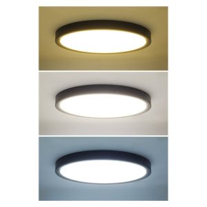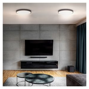 LED stropní svítidlo Estela v černém tenkém provedení je ideálním řešením pro moderní interiéry. Díky dálkovému ovladači můžete plynule regulovat jas, měnit barevnou teplotu světla (3000K–6500K) a volit mezi přednastavenými režimy. Maximální příkon 36W a světelný tok až 2700 lm (při 4000K) zajišťují dostatek světla pro každodenní použití.
