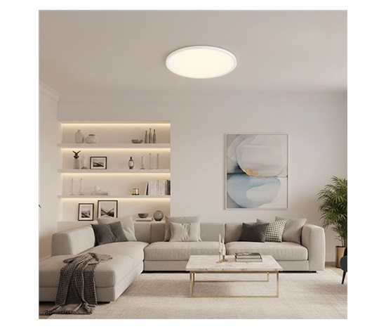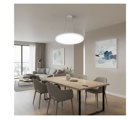 Montáž je flexibilní – světlo lze instalovat přímo na strop nebo zavěsit pomocí instalačního setu, který je součástí balení. Panel má vysoký index podání barev (CRI > 80), úhel svícení 120° a dlouhou životnost LED až 20 000 hodin. Designové provedení v bílé barvě a kompaktní rozměry 500 × 27 mm doplňuje elegantní vzhled celého interiéru. Díky hodnotě UGR < 19 panel zároveň eliminuje nežádoucí oslnění a vytváří příjemné pracovní nebo odpočinkové prostředí.