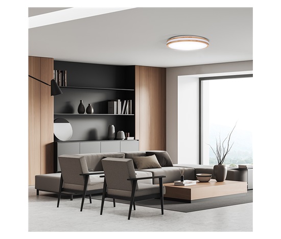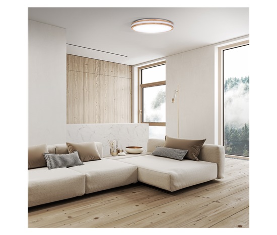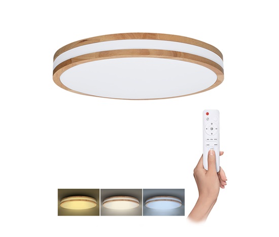 LED osvětlení Woody v sobě kombinuje kvalitní masivní dub a špičkovou technologii. Díky přiloženému dálkovému ovladači lze pohodlně regulovat teplotu světla v rozsahu 3000K–6500K a upravit intenzitu osvětlení dle aktuální nálady. Výkon 48 W a světelný tok 3360 lm (při 4000K) zaručují dostatek světla pro každodenní použití v domácnosti i kanceláři.