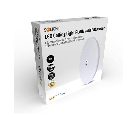 Úvod Hobby a zahrada Svitidla a žárovky Světla a svítilny Solight LED stropní světlo PLAIN s PIR sensorem, 18W, 1260lm, 3000K, kulaté, 33cm