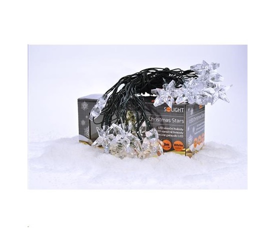 Solight LED vánoční řetěz, hvězdy, 20 LED, 3m, přívod 3m, IP20, bílá