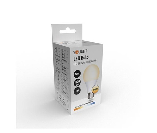 Solight LED žárovka, klasický tvar, 12W, E27, 3000K, 270°, 1320lm