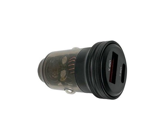 30 W USB-C a USB-A nabíjecí adaptér do auta, vstup: 12-24 V, výstup USB-C PD30W: 5V-3A, 9V-3A, 12V-2,5A, USB-A QC3.0: 5V-3A, 9V-2A, 12V-1,5A, ochrana proti přetížení, přepětí a přehřátí