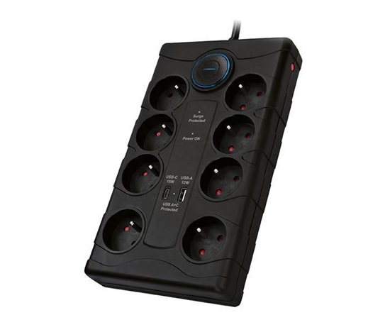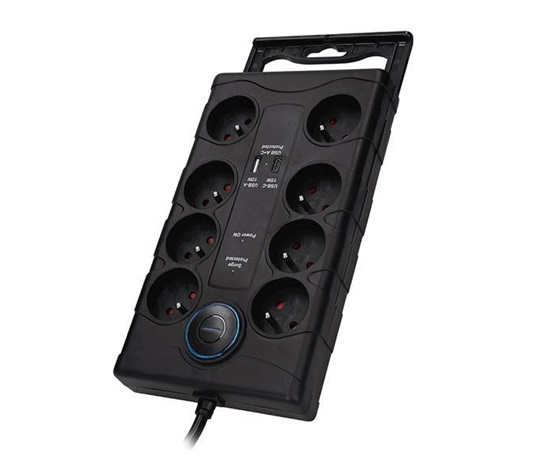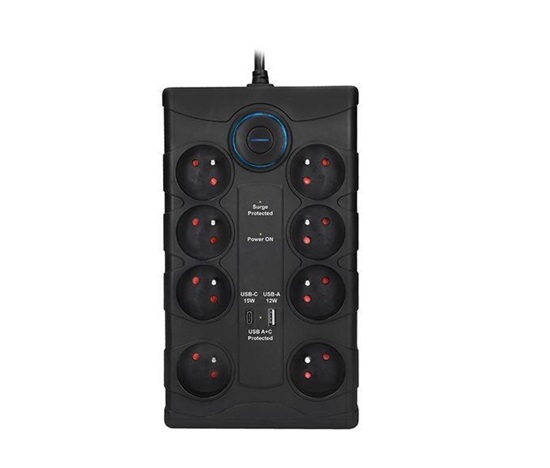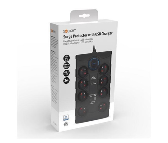 Spolehlivá přepěťová ochrana s integrovanou USB nabíječkou chrání vaše zařízení proti náhlým výkyvům napětí. Díky osmi zásuvkám a dvěma USB portům je ideální do domácnosti i kanceláře. S maximální zátěží až 3680 W zvládne i energeticky náročnější spotřebiče.