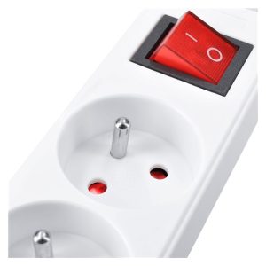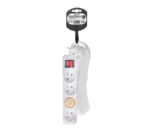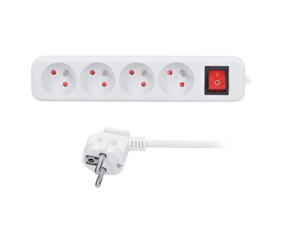 Počet zásuvek: 4, průřez vodičů: 3 x 1mm2, typ kabelu: H05VV-F3, lomená vidlice, barva: bílá