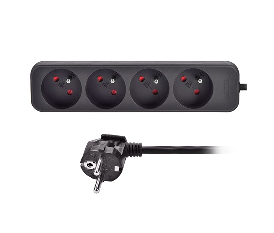 Praktický černý prodlužovací kabel s délkou 3 metry a čtyřmi zásuvkami umožní přivést elektrickou energii tam, kde není k dispozici pevná zásuvka. Ideální pro domácí i kancelářské využití.