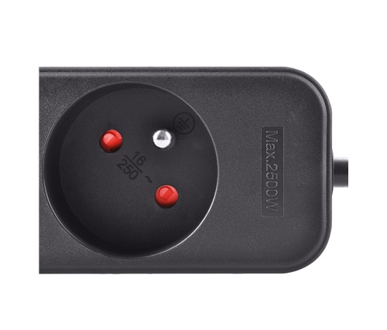 Přívod je navržen pro maximální zátěž 2300 W, tzn. proudové zatížení 10 A při napětí v síti 230 V~. Zajišťuje stabilní přenos energie pro běžné elektrospotřebiče. Zásuvky jsou vybaveny dětskými pojistkami pro maximální bezpečnost.