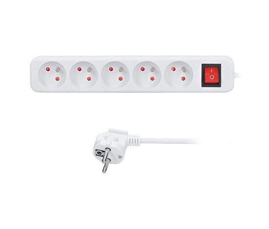Počet zásuvek: 5, průřez vodičů: 3 x 1mm2, typ kabelu: H05VV-F3, lomená vidlice, barva: bílá