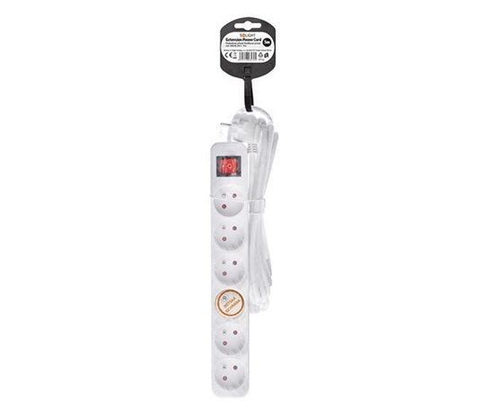 Praktický bílý prodlužovací kabel s délkou 5 metry a šesti zásuvkami umožní přivést elektrickou energii tam, kde není k dispozici pevná zásuvka. Podsvětlený vypínač umožňuje pohodlné ovládání všech připojených zařízení. Ideální pro domácí i kancelářské využití.
