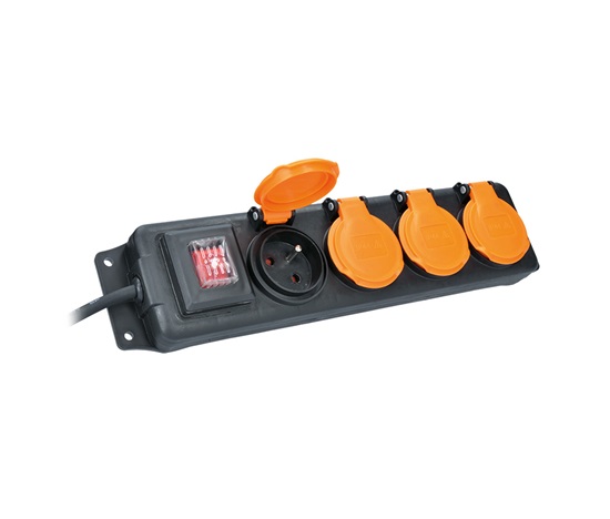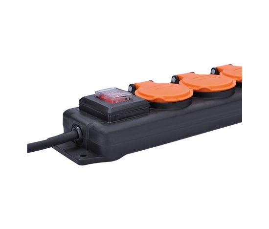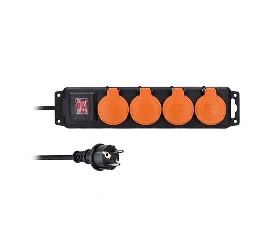 Gumový kabel, počet zásuvek: 4, průřez vodičů: 3 x 1,5mm2, typ kabelu: H05RR-F 3G, přímá vidlice, dětské pojistky, barva: černá