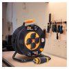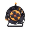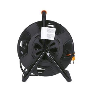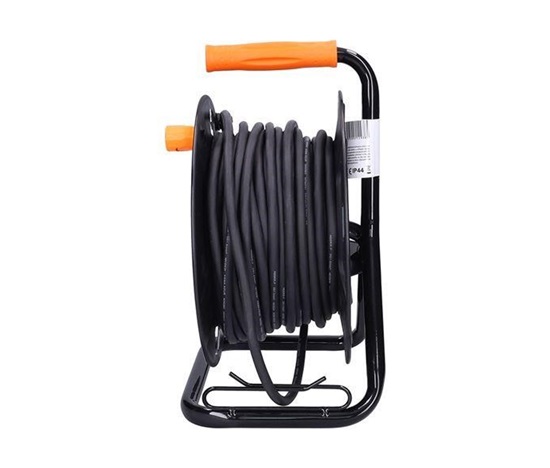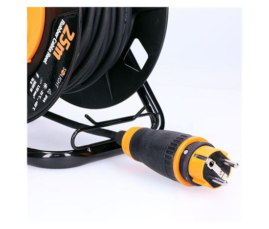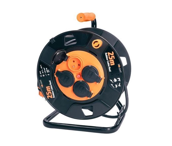 Gumový kabel typ H05RR-F 3G s vodiči o průřezu 3×1,5 mm2 je vhodný pro venkovní použití i vnitřní prostory. Buben je vybaven zásuvkami s dětskými pojistkami a tepelnou pojistkou, která zajišťuje bezpečnost při přetížení nebo neúplném odvinutí kabelu. Produkt splňuje stupeň krytí IP44, který zajišťuje ochranu proti stříkající vodě. Vhodný pro bezpečné a spolehlivé připojení stavebních, zahradních i méně náročných průmyslových zařízení.