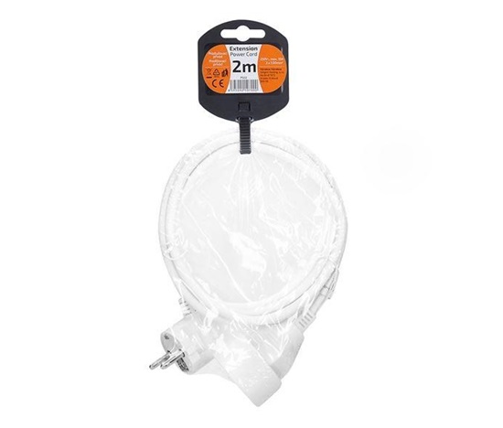 Kompaktní bílý prodlužovací kabel s délkou 2 metry a jednou zásuvkou je ideální pro jednoduché prodloužení elektrické energie v domácnosti, kanceláři nebo dílně. Vhodný pro připojení samostatného zařízení mimo dosah pevné zásuvky.