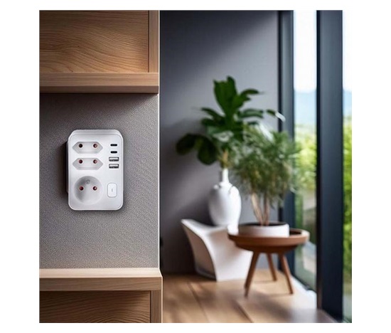 Tři zásuvky (1× 16 A + 2× 2,5 A) zvládnou celkovou zátěž až 3680 W a umožní připojit běžné spotřebiče v obýváku, ložnici nebo pracovně. Zásuvky jsou navíc vybaveny dětskými pojistkami, což zajišťuje bezpečný provoz i v domácnostech s dětmi. Díky dvěma USB-A a dvěma USB-C portům můžete pohodlně nabíjet až čtyři zařízení současně – s celkovým výkonem až 17 W. Perfektní pro veškerou USB elektroniku.