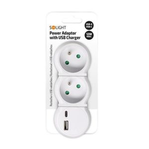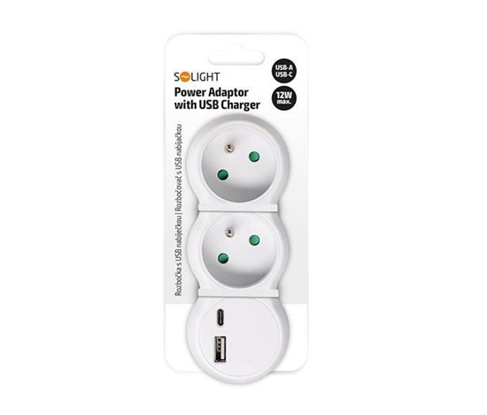 Úvod 48-kabely-a-redukce-(krome-lan) Solight rozbočka s USB A+C nabíječkou, 2 x 10A, bílá