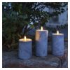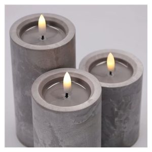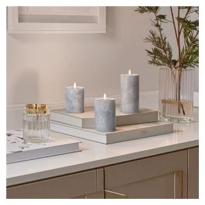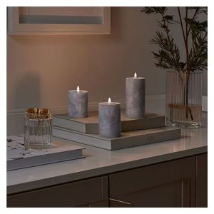 Vytvořte si elegantní atmosféru s LED svíčkami s efektem přirozeně blikajícího plamene a luxusním dekorem šedého mramoru. Tato sada tří svíček vnese do vašeho interiéru moderní a útulný vzhled bez nebezpečí otevřeného ohně.