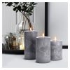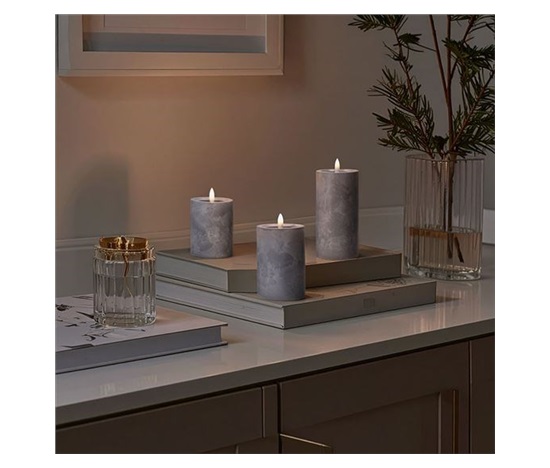 Vytvořte si elegantní atmosféru s LED svíčkami s efektem přirozeně blikajícího plamene a luxusním dekorem šedého mramoru. Tato sada tří svíček vnese do vašeho interiéru moderní a útulný vzhled bez nebezpečí otevřeného ohně.