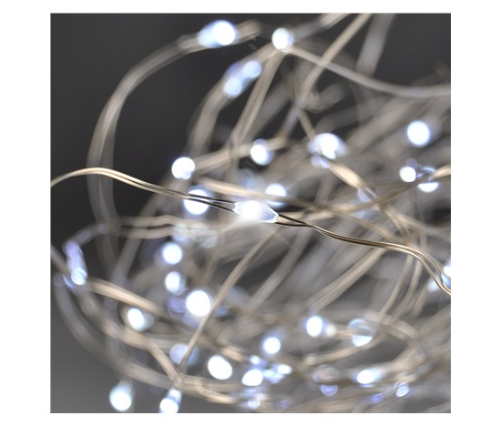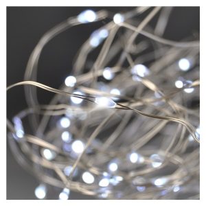 Solight vánoční řetěz stříbrný, 50x mini LED, 5m, 3 x AA, studené světlo