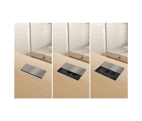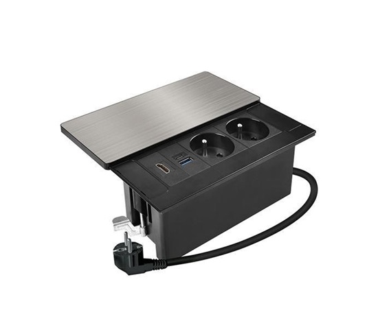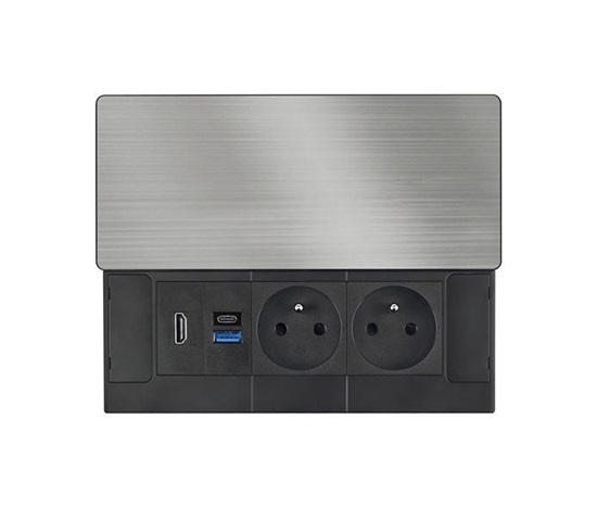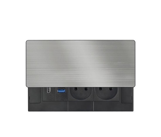 Tento vestavný blok zásuvek nabízí více než jen napájení – kombinuje dvě síťové zásuvky 230 V, USB rychlonabíječku a HDMI port v jednom kompaktním modulu. Vrchní kryt z matné tmavé nerez oceli (inox) s posuvným mechanismem se snadno začlení do moderního interiéru pracovních stolů, prezentačních prostor i obývacích pokojů. Díky kabelu o délce 2 metry je instalace flexibilní a pohodlná.
