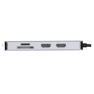 | • Maximalizujte svou produktivitu bez ohledu na to, kde pracujete, a rozšiřte svou plochu na 2 externí monitory s pomocí portů HDMI 2.0 (maximální rozlišení 4K při 60 Hz)* • Kompatibilní s monitory nebo televizory s vysokým dynamickým rozsahem (HDR), ideální pro filmy a grafické aplikace • Rozšiřte port USB-C na vašem notebooku na 2 porty USB-A 3.2 Gen 1 navíc (1× s rychlým nabíjením) a 1 port USB-C 3.2 Gen 1 (podporuje průchod PD do notebooku**). Plus superrychlý přenos dat 5 Gb/s na port USB-A nebo USB-C, ideální pro práci s externími flash disky • Alternativně lze k portu USB-C připojit volitelný adaptér Targus USB-C AC, který vašemu notebooku přináší příkon až 100 W*** a navíc technologii Fast Role Swap, která zajišťuje stálé napájení příslušenství**** • Sloty pro 1 SD a 1 Micro SD podporující paměťové karty vybavené technologií Secure Digital v3.0 UHS-I pro superrychlý výkon při čtení i zápisu • Připojte se k síti bezpečně pomocí portu RJ45 Gigabit Ethernet • Kompatibilní s operačními systémy Windows, macOS, Chrome OS™, iPadOS, Linux, Samsung DeX • Záruka 3 roky |