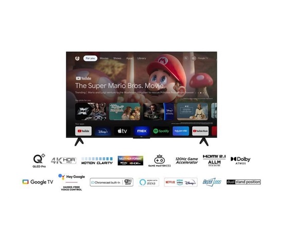 55″ (139 cm) 4K Ultra HD, rozlišení 3840 × 2160 px, DVB-C/S2/T2, kodek HEVC (H.265) – nový digitální standard, Smart TV – internetový prohlížeč, 3200 PPI, HbbTV, HDR/HDR Dolby Vision/HDR10/HDR10+/HLG, 3× HDMI 2.1, 1× USB 3.0, OS Google TV, Bluetooth, Chromecast, MagiConnect T-cast, Miracast, Wi-Fi, zrcadlení obrazu. Evropská distribuce.