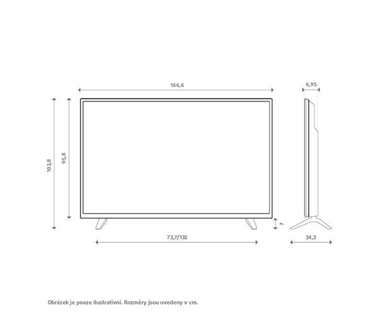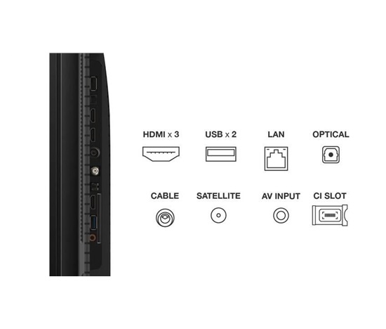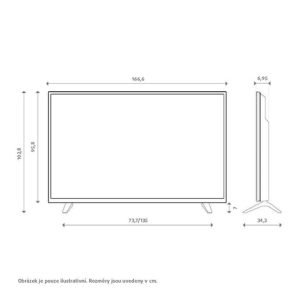 75″ (189 cm) 4K Ultra HD, rozlišení 3840 × 2160 px, DVB-C/S2/T2, kodek HEVC (H.265) – nový digitální standard, Smart TV – internetový prohlížeč, 3 200 PPI, HbbTV, HDR/HDR Dolby Vision/HDR10/HDR10+/HLG, 3× HDMI 2.1, 1× USB 3.0, 1× USB 2.0, OS Google TV, Bluetooth, Chromecast, MagiConnect T-cast, Miracast, Wi-Fi, zrcadlení obrazu