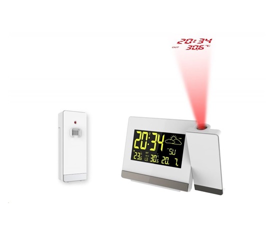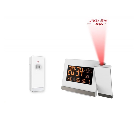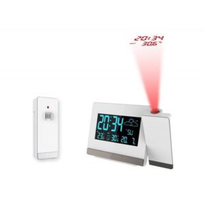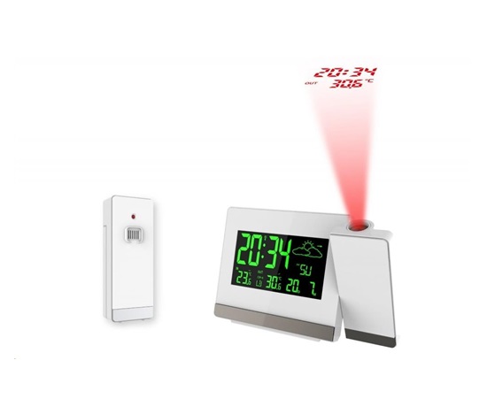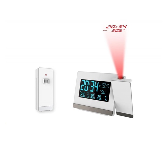 Meteorologická stanice s budíkem a projekcí času a vnější / vnitřní teploty, předpovědí počasí a barevným inverzním s možností volby nastavení zobrazení až z 256 barev.