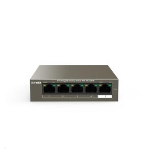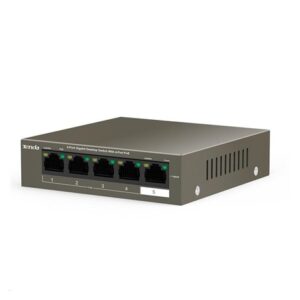 Tenda TEG1005P-4-63W přepíná data pomocí 5ti portů RJ45 s přenosovou rychlostí 10/100/1000 Mb/s s automatickou detekcí rychlosti. Jeden port slouží pro Uplink a 4 PoE porty podporují PoE 802.3af a 802.3at. Switch podporuje stabilní 8 jádrové PoE napájení, ochrana proti přepětí 6kV. Podpora přepojování uzlů v módu Store-and-Forward. Full-duplex kontrola toku 802.3x, half-duplex kontrola toku v režimu Back-Pressure.