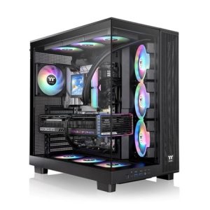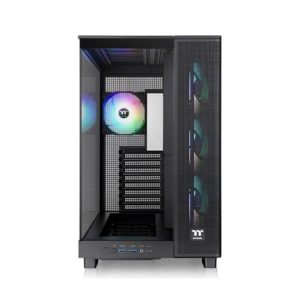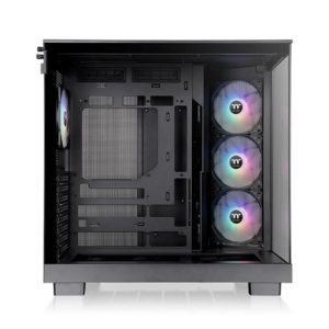 Skříň View 380 XL TG ARGB Mid Tower je dvoukomorová skříň ATX s podporou skryté konektory základní desky, čtyřmi 120mm ventilátory Hydraulic Bearing ARGB Lite a prostorem pro 360mm radiátor jak na horní straně, tak na straně základní desky. Podporuje až deset 120mm ventilátorů a je vybaven vestavěným držákem GPU, předními I/O porty, zapuštěnou spodní přihrádkou a šikmým designem na straně základní desky, což uživatelům nabízí větší flexibilitu pro jejich ideální sestavu.