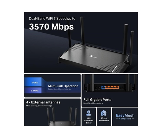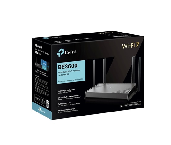 TP-Link Archer BE220 EasyMesh WiFi7 router(BE3600,2,4GHz/5GHz,1xGbEWAN,4xGbELAN)